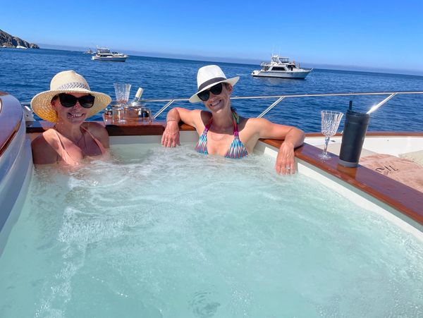 The hot tub is quite easily one of the simplest systems on board to maintain. The system is powered by 220V and 110V AC with 12VDC lights. The CMU made by Balboa and can be controlled on board or via an app. The water is filtered and O-zone sanitized (no chlorine) and runs through a 4KW electric heater. The tub remains hot ~102F, and full year-round.