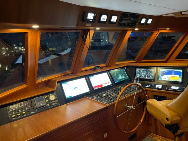 All navigational electronics on board are by Furuno. The flybridge has two Furuno TZT3, 15" MFDs, a Furuno FI70, ICOM 510 VHF and a Furuno pilot control. The pilothouse has two Furuno TZT2BB coupled to four Seatronx screens. Two Icom VHFs, SSB, four Fi70s and an NVR screen provide a commanding view all all systems.