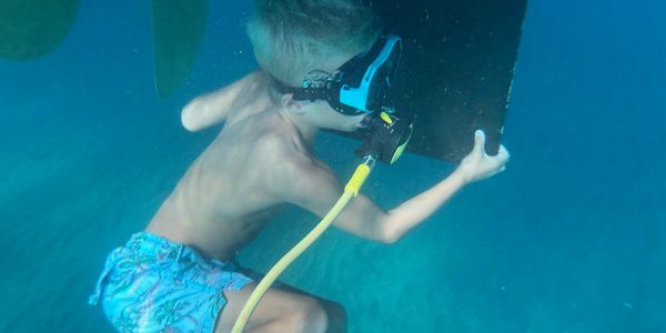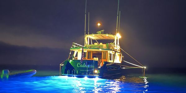 In addition to carrying enough masks, fins and snorkels for every guest on board, Calusa offers a unique "Hookah Rig" experience. The swimstep has a retractable 100ft hair hose (triple stage filtered) to an oil-less compressor in the engine room.